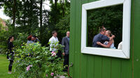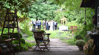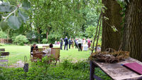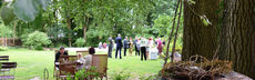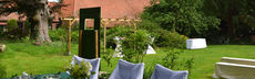 Inmitten von Rosen und Blütengehölzen, vorbei an Buchshecken, Obst-, Wald- und Kräutergarten, führen Wege zu verschwiegenen Winkeln und lauschigen Sitzplätzen.