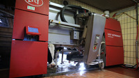 Eine andere Maschine wickelt die Paletten mit durchsichtiger Folie ein. Entfernt erinnert die Drehbewegung an ein Fahrgeschäft auf dem Jahrmarkt. Über weitere Rollbänder kommen die verpackten Paletten ins Kühlhaus. Dort werden sie bei fünf Grad gelagert.