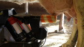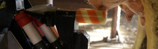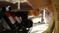 Nach jedem Melken reinigt der Roboter das Melkgeschirr und die Milchleitungen mit Heißwasser und säubert die Bürste mit Peressigsäure. Dreimal täglich gibt es zudem eine große Hauptreinigung mit Reinigungsmittel.