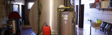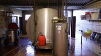 Die "normale" Milch fließt von dem kleinen Tank durch einen Filter über die Rohre an den Decken in den großen Tank mitten im Raum. Dieser kühlt sie auf vier Grad Celsius. Bis der Lkw der Molkerei kommt, bleibt die Milch in dem Tank.
