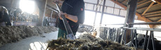 Unterhalb der Spalten der Laufflächen wird die Gülle aufgefangen und dann auf den Feldern als Gülle weiter verwendet. Ein Roboter säubert die Spalten regelmäßig. Einzig die Boxen müssen händisch gereinigt und neu eingestreut werden.