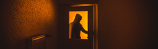 * Flackerndes, abgeschirmtes Licht scheint im Dunkeln aus dem Nachbarhaus, Fenster sind ungewohnt abgedeckt? Möglicherweise gehen Einbrecher hier ja gerade ihrem Hobby nach.