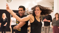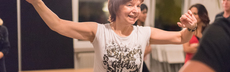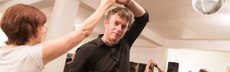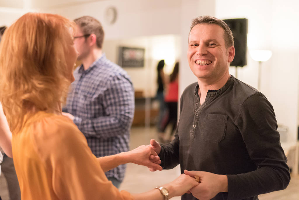 Wir lernen den nächsten Schritt. Akzent auf dem linken Fuß, dann einen Schritt mit rechts – und schon habe ich mit dem Mann den Platz gewechselt. Der Mann – das ist in Alejandros Kurs immer ein anderer. Alle paar Minuten habe ich einen neuen Tanzpartner, was für mich als Anfängerin schon eine Herausforderung ist, aber auch eine Überraschung.