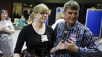 Einige der Hunte Valley Dancers sind schon seit Jahren oder Jahrzehnten dabei. So auch Michelle, die gerade mal 19 ist, aber schon seit acht Jahren mittanzt, heute im schwarz-weißen Petticoat. Bei ihr liegt der Square Dance in der Familie: Die Mutter fing damit an, die Schwester und Michelle schauten zu, bis sie dann selber mitmachten. Heute ist Michelle mit ihrem Vater hier. Ja, auf den Specials, den Tanztreffen verschiedener Clubs, seien schon mehr junge Leute, auch mal Männer. „Einige Tänzerinnen bringen ihren Freund mit und der muss es dann auch lernen“, sagt Michelle und grinst.