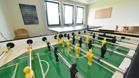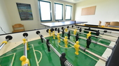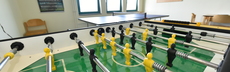 Eine Tischtennisplatte und ein Kickertisch in Schwarz-Gelb sollten aber den ersten Bewegungsdrang oder auch die Langeweile lindern.