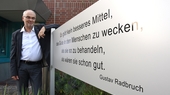 Im Hintergrund hängt ein Schild mit dem Anstalts-Credo: "Null Toleranz". Dort steht geschrieben: "Wir in der JVA Oldenburg akzeptieren keinerlei Ausübung von Gewalt - weder in körperlicher Hinsicht noch in seelischer Form. Durch Schweigen können wir solche Taten aber nicht verhindern, Schweigen schützt den Täter!" Und: "Der Schutz von Ihnen und anderen betroffenen Inhaftierten hat für uns oberste Priorität!"