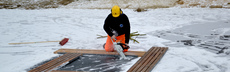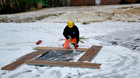 Hier - wie auch außerhalb, in Seen und fließenden Gewässern. Ganz egal, ob zugefroren oder nicht. Das setzt freilich besondere körperliche Fähigkeiten voraus - und ein unerschütterliches Vertrauen in Kollegen wie Ausrüstung.