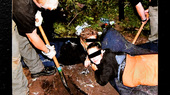 Bis es dazu kommen kann, ist allerdings viel Vorarbeit nötig: Mit einer Motorsäge muss ein Zugang ins Wasser geschaffen, eine Rettungsleine am Körper verankert werden. Erst dann, und unter Beobachtung, geht's hinab. Eine extreme körperliche Belastung wegen des 4 Grad kalten Wassers sei das nicht. Vielmehr Kopfsache.