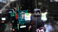 Während die Einsatzkräfte also oberhalb Hand anlegten und die ausgehärtete Masse ausbuddelten, hatten die Demonstranten augenscheinlich ihren Spaß. Trotz der warnenden Hinweise auf mögliche Amputationen. Derartige Ignoranz sind die Männer der TEE aber leidlicher Weise gewohnt. "Wir hatten auch schon erlebt, wie Freunde zum Protest an aktive Bahngleise gekettet wurden - das geht gar nicht", sagen sie.