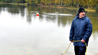 Gleicher Tag, vier Stunden später und (nicht nur) gefühlte 20 Grad kälter. Am und im Baggersee Westerholt wird groß fürs Training aufgefahren. Extreme Gewichte und riesige Luftkissen werden ins Wasser eingebracht, reichlich Technik wie Zelte aufgebaut und jede Menge Kabel wie Schläuche verlegt. Dann geht's hinein und - je nach Aufgabenstellung wie erdachtem Szenario - auch hindurch. Viele Meter unterhalb der Welt da draußen.